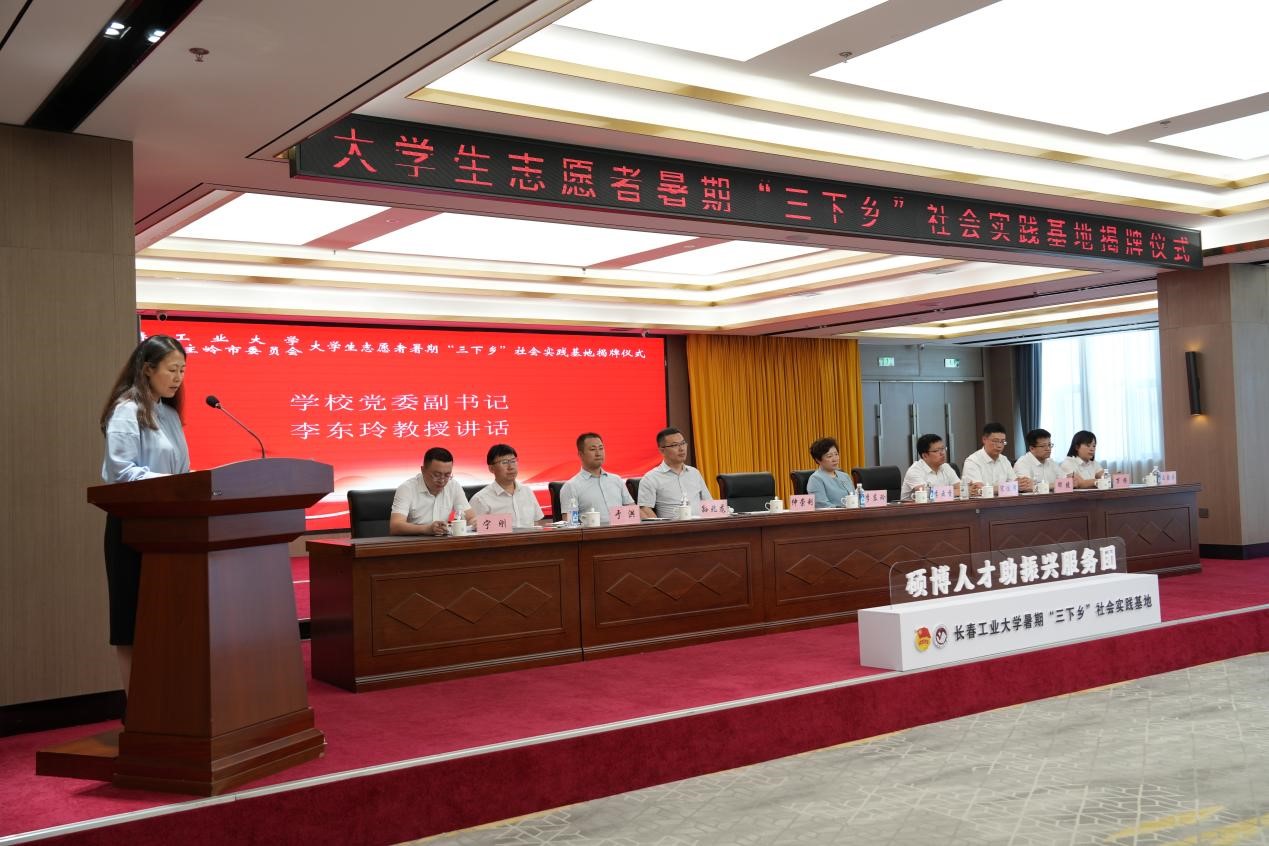 7月9日下午,校地共建大学生志愿者暑期“三下乡”社会实践基地揭牌仪式在当地举行。校党委副书记李东玲、公主岭市委副书记李云香出席仪式,公主岭团市委、教育局及辖区各街道有关人员,我校党委学生工作部、党委研究生工作部、团委及成人直播