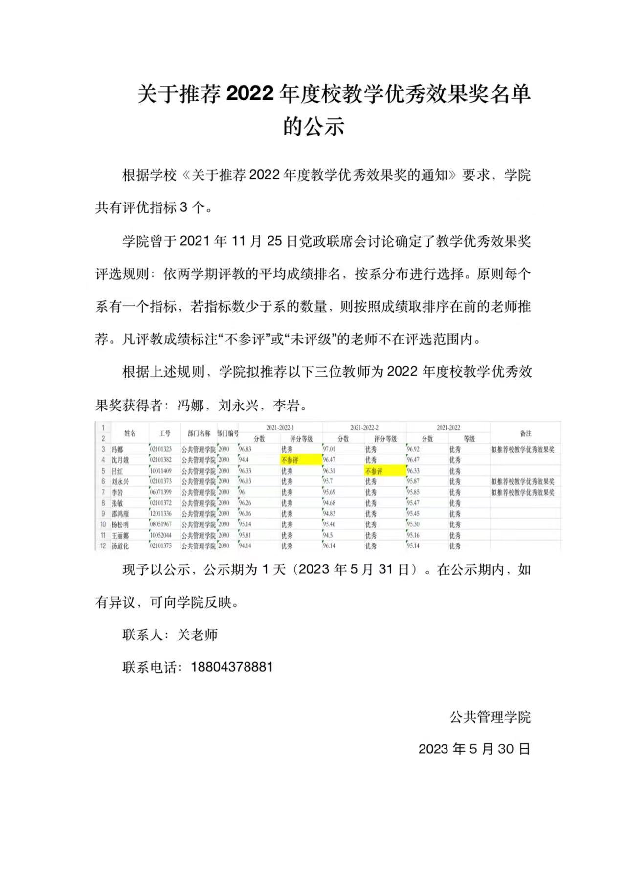 成人直播 关于推荐2022年度校教学优秀效果奖名单公示