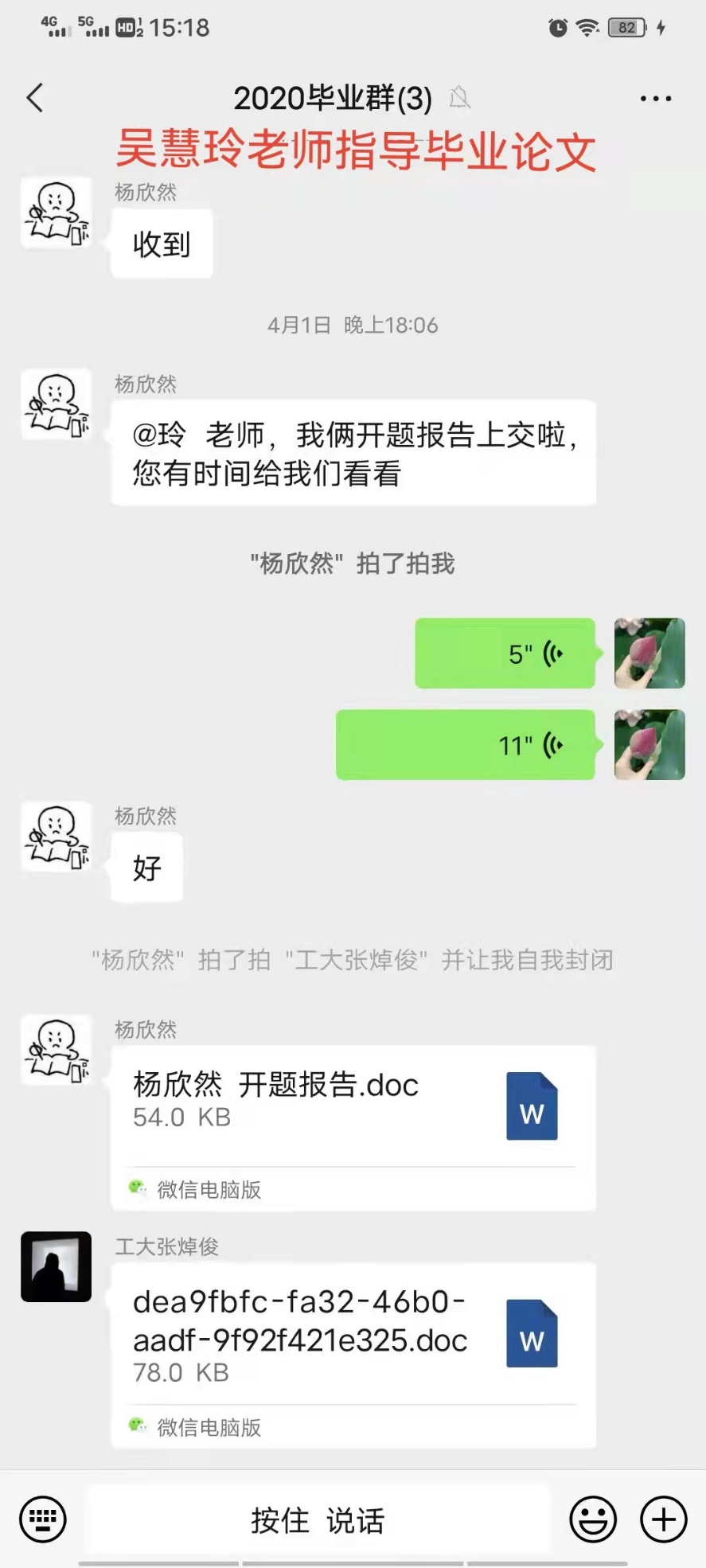 毕丹老师给“横班纵组”同学布置了查阅和梳理有关疫情期间社会工作服务的相关文献的作业,并通过腾讯会议召开组会,请每位同学分享阅读文献的收获和体会。毕老师还邀请了已经毕业的学生参会,这些学生一直工作在社区抗疫一线,有社工也有志愿者,他们给学弟学妹们讲述了社区抗疫前线的情况,理清了在抗疫工作中社工和志愿者的区别,生动展现了当下社区社工和志愿者的实际工作状况。毕老师也为同学们分析了疫情当下人们会产生焦虑情绪的原因,并为学生如何消除不必要的焦虑情绪提供了心理辅导。