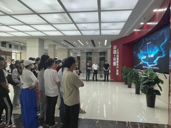 长春市人力资源和社会保障局对于此次活动高度重视,市人才服务中心王小天副主任全程组织陪同。活动伊始,在王主任的组织和引领下,学院师生来到长春市人力资源服务产业园综合服务大厅参观,了解产业园服务大学生就业的各项工作流程和服务创业就业工作的整体布局。通过观看宣传片,师生们了解到,长春市作为重要的老工业基地和东北地区的重要中心城市,近年来在市委市政府的领导下,努力实现率先振兴全面振兴,经济和社会发展取得了突破,为广大志在投身国家建设的青年学子提供了更加广阔的舞台,也出台了一系列扶持大学生创业就业和吸引人才留长来长的优惠政策,为大学生留长就业创业实现理想、施展抱负创造了更好的条件。