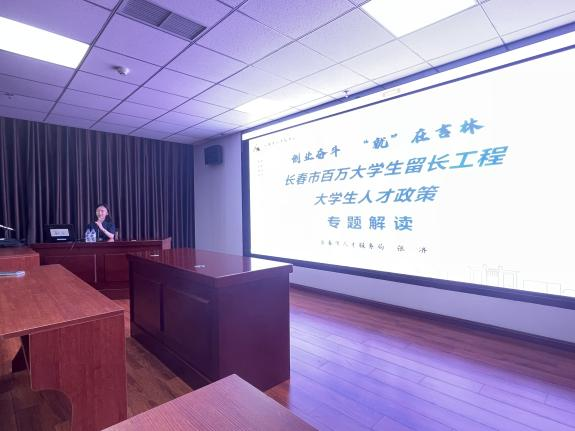 随后,市人才服务局专程委派负责制定和组织落实人才服务政策具体工作的张济同志,为学院师生进行了全面细致的创业就业和引才留才政策宣讲。通过宣讲,同学们深感长春是一座重才爱才吸才留才的城市,党和政府为此做了大量工作,实现留长大学生“生活有补贴,就业有岗位,创业有扶持,安家有保障,买车有折扣,落户有政策,人才有优待”。