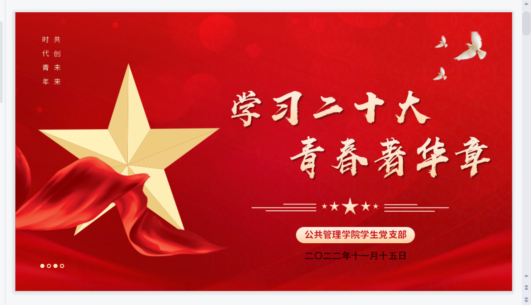 活动第一部分: “学习二十大,青春著华章”主题教育学习。