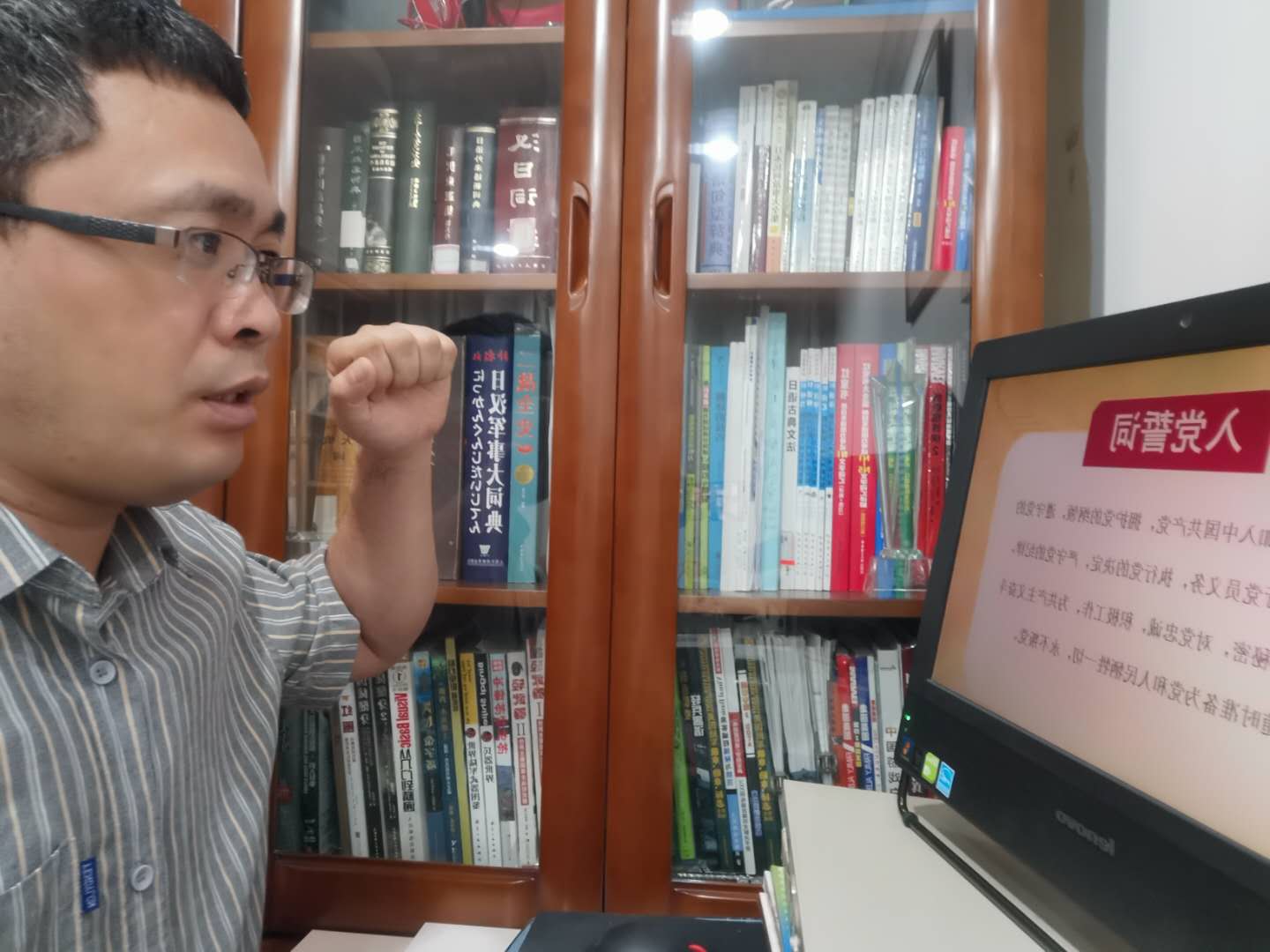 在法学系党支部书记冯娜的带领下,各位党员举起右拳,再次庄严宣誓:“我志愿加入中国共产党……随时准备为党和人民牺牲一切,永不叛党。”铿锵恢宏的誓词,强烈震撼着线上的每一位党员,一字一句,神圣豪迈,体现了党员同志对党无限忠诚的信念和决心。