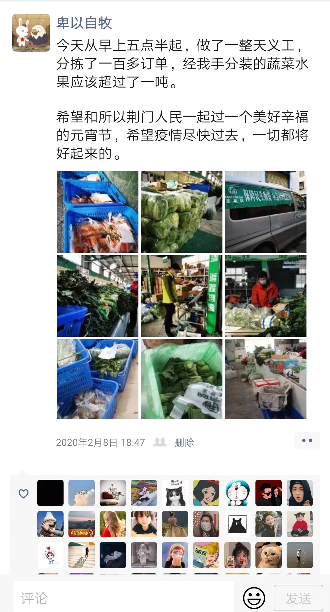 怀抱吉他,面对夕阳吟唱一首年轻而又沧桑的歌谣——这本是他寒假的愿望。没成想疫情来的如此迅猛,而荆门离武汉又是如此的近。当病魔在家乡肆虐,歌声总显得那么苍白,于是酷爱音乐的杜昱哲毅然响应号召参加了抗击疫情的志愿活动。