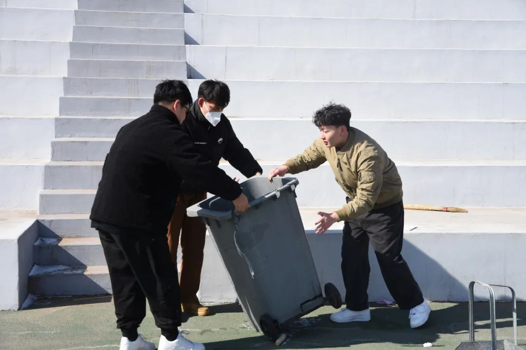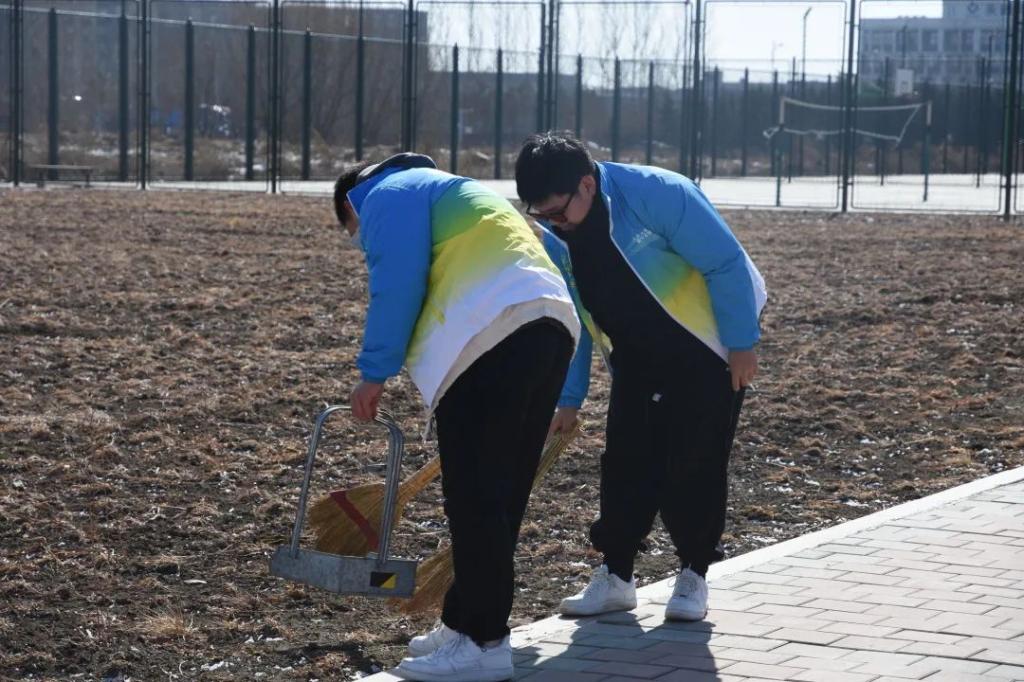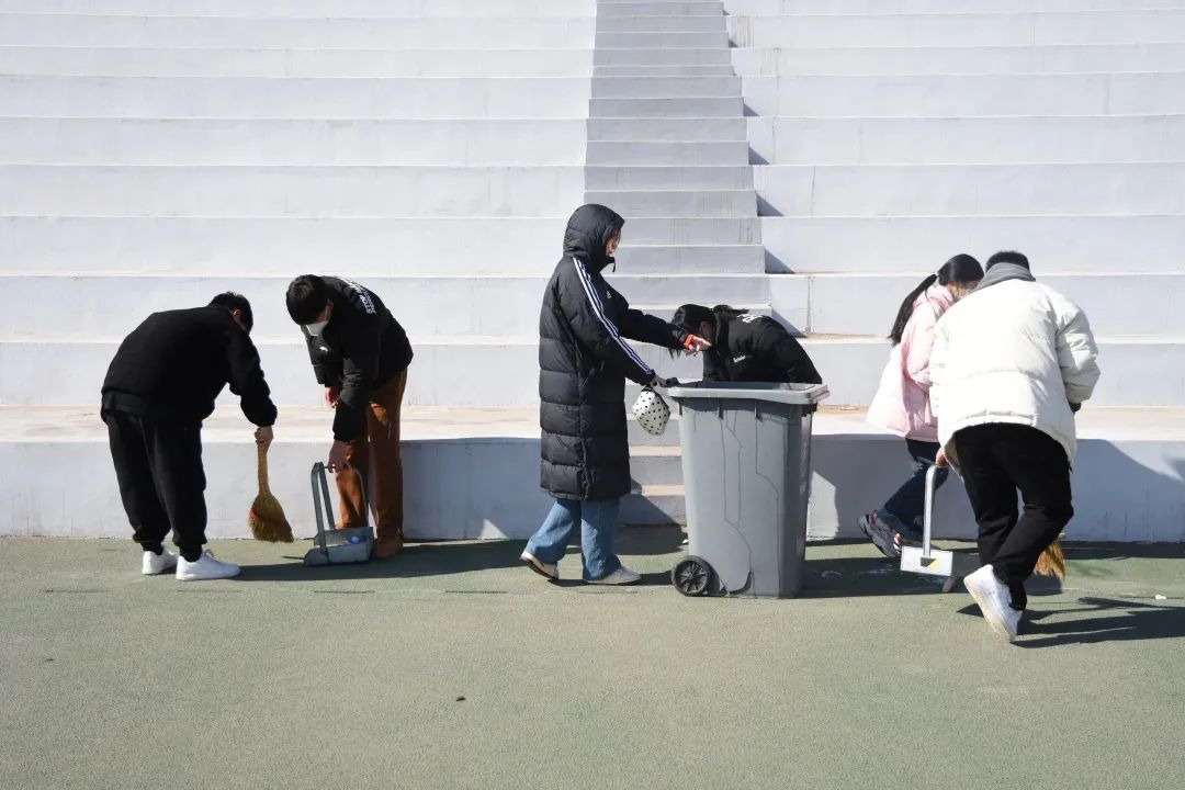 我院学生清扫了主楼门前、学校街道和操场的垃圾,主动维护学校卫生,为同学的生活提供了干净整洁的校园环境。主动捡拾垃圾,不仅保持了学校的卫生,也让我们在志愿活动中获得了荣誉感。
