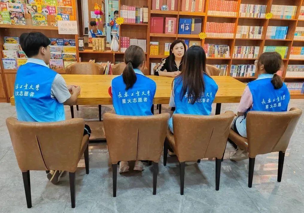 实践团一行来到吉林省深蓝教育科技有限公司,实践团成员朱斯琦对法人进行了访谈,了解到了深蓝教育综合体的办学初心是励志为长春市的学生提供更优质的教育,她还结合自身经历跟实践团成员分享了职业成长的经验和心得,并激励作为新时代大学生的我们要有挑战自己的信心和勇气,做好人生规划,综合全面发展。