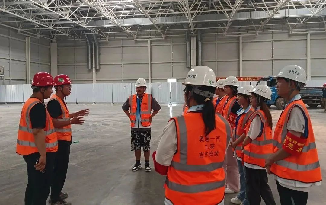 实践团来到吉林安装进行观察学习,感受吉林安装集团的成人直播。工作人员为大家悉心准备了安全帽和工作服,将同学们带到工地近距离的观看工人的工作,同时还详细介绍了相关工艺流程、施工优点等情况。实践团成员感受到了吉林安装科学管理、不断创新、团结一致的成人直播。