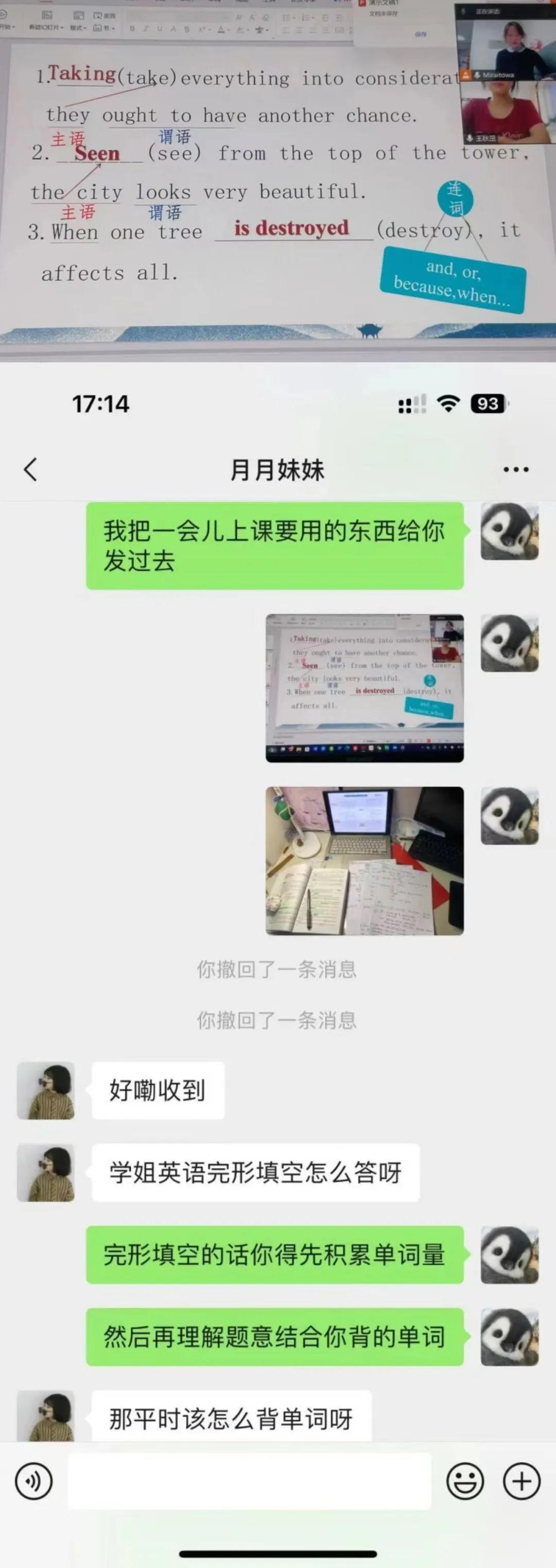 活动开展以来,我院一批政治觉悟高、业务素质好的优秀青年积极主动报名参加,并在第一时间完成结对子。“学伴+”志愿者们根据服务对象年级、学科、主要学业帮助诉求等,组建“一对一”、“多对一”的学业帮帮团,通过微信、QQ等即时通讯软件,及时解答服务对象学业问题,用热情与真诚践行志愿精神,得到了学生家长和学生们的一致认可和好评。接下来让我们一起看看成人直播