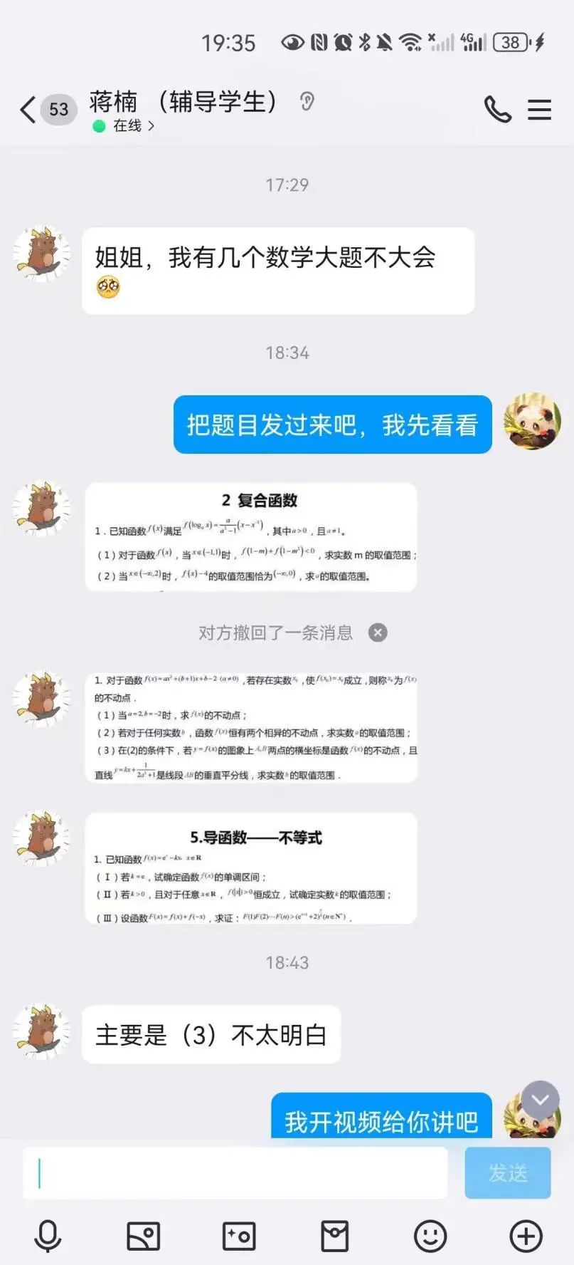 活动开展以来,我院一批政治觉悟高、业务素质好的优秀青年积极主动报名参加,并在第一时间完成结对子。“学伴+”志愿者们根据服务对象年级、学科、主要学业帮助诉求等,组建“一对一”、“多对一”的学业帮帮团,通过微信、QQ等即时通讯软件,及时解答服务对象学业问题,用热情与真诚践行志愿精神,得到了学生家长和学生们的一致认可和好评。接下来让我们一起看看成人直播