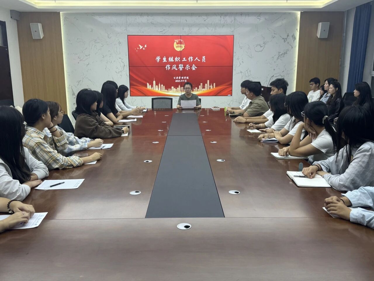 于北湖东区主楼401教室组织召开学生组织工作人员作风警示会。