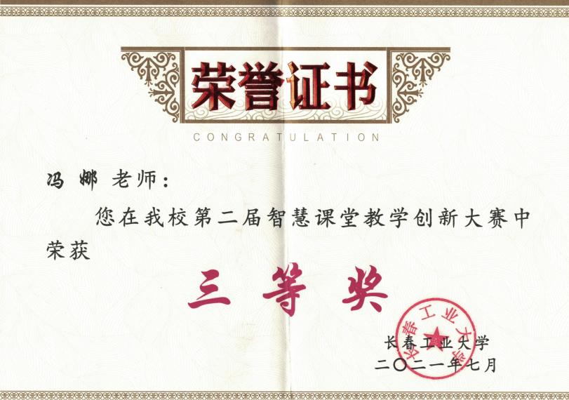 近日,我院教师冯娜同志在成人直播 第二届智慧课堂教学创新大赛中获得三等奖。