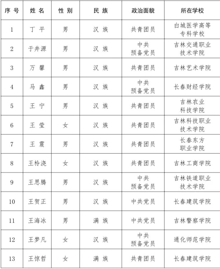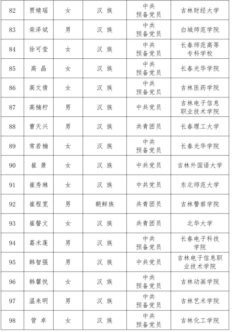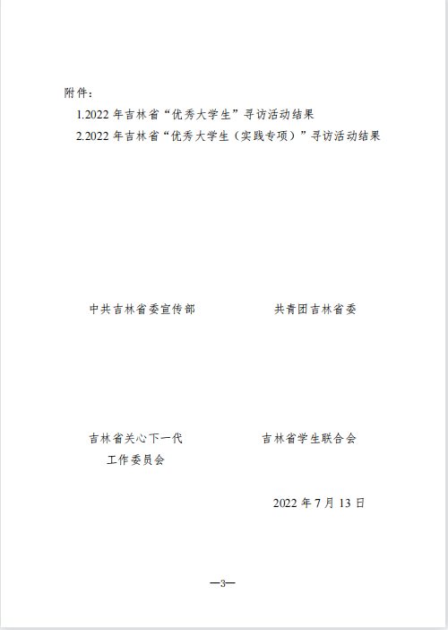 2022吉林省“优秀大学生”寻访活动结果