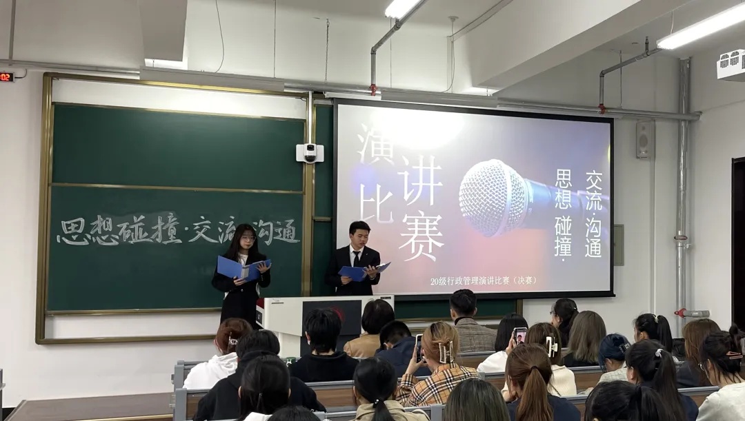 4月26日下午,为进一步激励、提高同学们对语言的感受能力,表达能力和掌控能力,学习的逻辑与思维能力,学院20级行政管理专业的同学们开展了“思想碰撞•交流•沟通”主题演讲比赛。