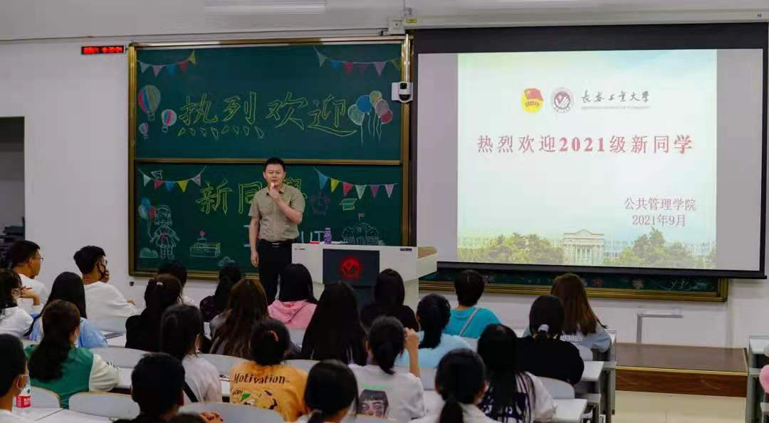 陈磊老师首先提出,在校园里的日常中要把安全放在第一位,我们要遵守疫情防控的要求、积极配合相关工作,注意电信诈骗,注意消防安全和饮食安全等。其次大学期间的学习,会考验同学们的意志力和专注力,既要保持对学习的热情,也要合理的放松,规划好自己的大学生活。努力完成学业的同时,也要积极参与学校的各项活动和实践。我校一直将毕业生就业指导作为重中之重,因此开展了许多实践活动,比如创业原理与过程和生涯规划等课程,强化就业引导。面对此形势,老师告诉同学们要学好专业知识,掌握专业技能,提高自身素质,成为“有学位、有职位、有地位、有品位”的“四有新人”。陈磊老师指出,军训是每个大学新生的必修课,可以提高同学们的政治觉悟,激发爱国热情,培养吃苦耐劳的精神和艰苦奋斗的毅力,为养成良好的学风和生活作风打好基础。按照学校要求,我们将进行为期21天的军训生活。希望同学们以高度的热情和饱满的斗志完成军训的各项任务,用优秀的表现交出大学第一份满意答卷。最后,陈磊老师介绍了2020年我院获得的许多奖项。在第十二届大广赛中学院斩获众多奖项、互联网+大学生创新创业大赛获得银奖、“哲寻杯”高校公共管理案例大赛荣获一等奖。张宇航同学获得省“十佳大学生”的荣誉称号;赵景晨同学担任全国学联二十七大代表、获得“工大之星”、“青马骨干”等荣誉称号。