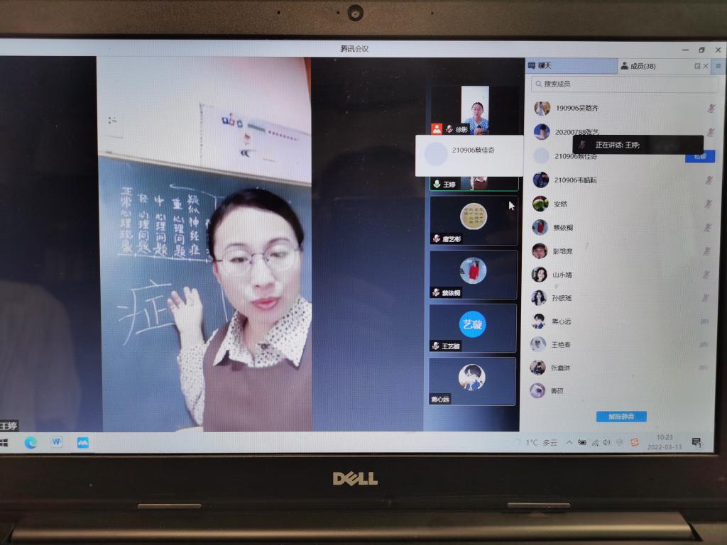 2022年3月13日上午10点,李业旗、唐艺彬教授按照学院的总体要求,组织本组学生在腾讯会议线上开展了关于疫情防控期间心理咨询及学业答疑的专题课。本次会议特别邀请了吉林省著名的心理辅导师、青少年生涯规划师王婷老师,针对疫情防控期间大学生应如何加强正能量的心理建设为同学们做专题讲座。王老师还对同学们提出的“如何缓解自己的紧张、焦虑情绪”“如何解决社交恐惧”等问题进行了一对一的辅导。讲座结束后,李业旗教授就公共管理专业本科生就业和考研等同学们普遍关心的问题给予了耐心解答。两位老师的精彩讲座受到同学们的热烈欢迎,缓解了同学们的内心压力,也激发了同学们的学习斗志。