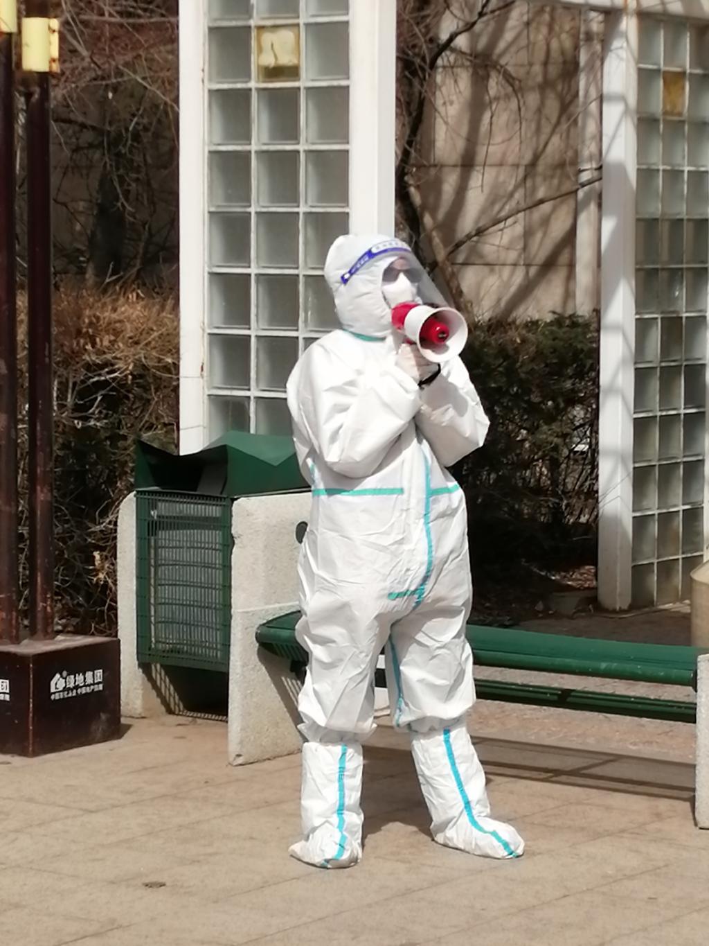 公共管理系汪泳老师在南关区新里社区绿地新里中央公馆小区报名成为志愿者,在社区居民全员核酸检测工作中,负责维持现场秩序,提醒居民保持2米以上的距离,以实际行动帮助社区居民筑起安全防控的屏障。