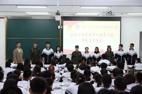 教官见面会环节。首先,三位承训教官分别进行自我介绍,并与所在排班干部进行对接。随后,排长王帅带领同学们学习军训学生行为规范等各项纪律要求,通过进一步细致讲解,使同学们对此次军训有了更充分的了解与准备。最后,由教官王梓带领同学们学习演唱强军战歌。