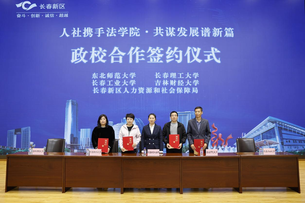 为深入学习贯彻党的二十大精神和习近平法治思想,进一步推进法学学科专业发展与地方法治建设的深度融合,2023年10月12日,成人直播 等四所院校与长春新区人力资源与社会保障局签订政校合作框架协议。