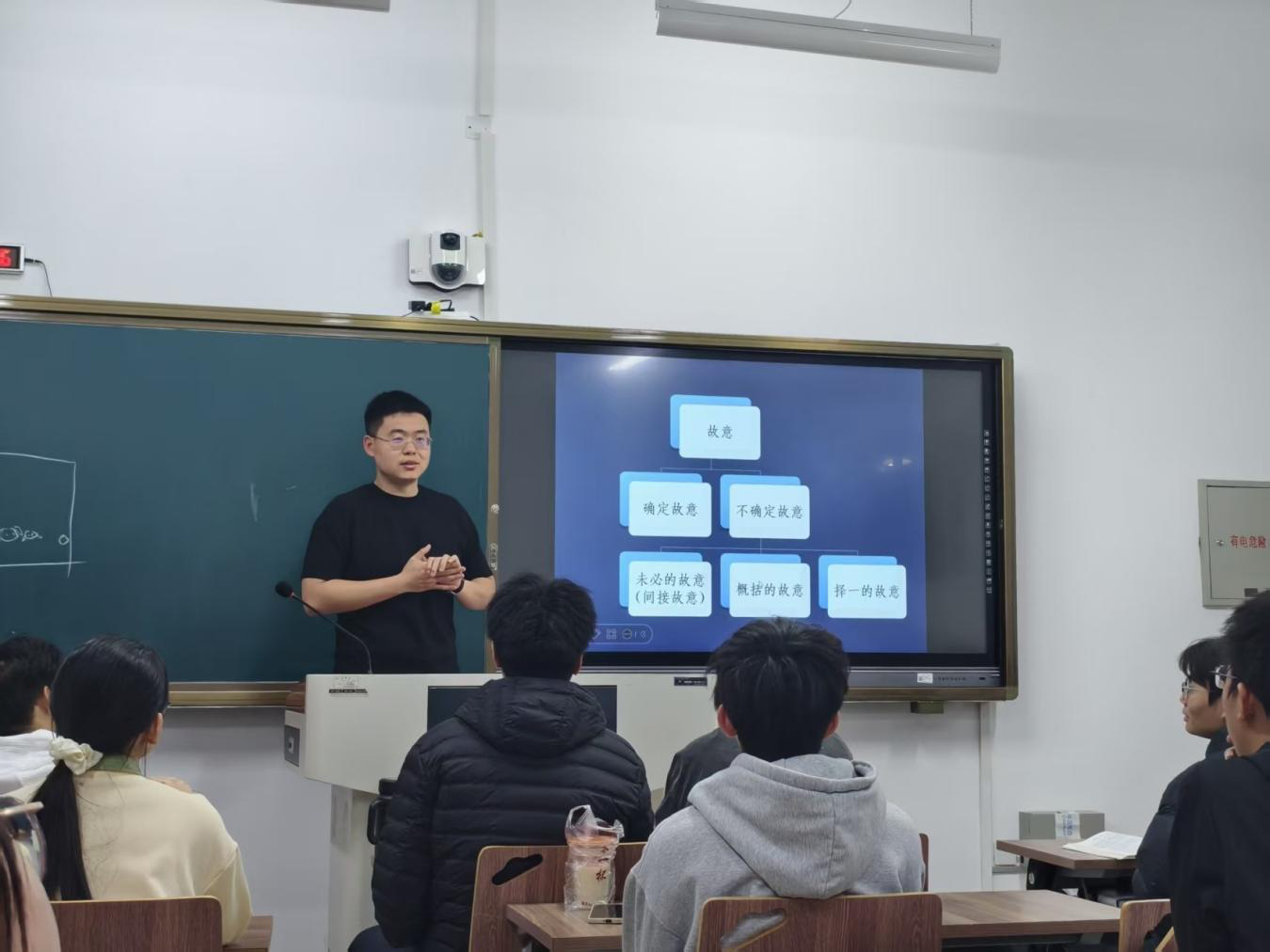 在本科生刑法课堂,刘宇律师以自己代理的一起涉黑案件为切入点,将刑法总则中“故意”与“过失”概念,通过行为人的主观心态、客观环境及证据链条层层建构,让理论从法条走入现实。
