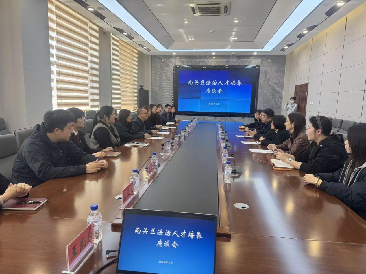 新闻网讯(通讯员 宋浩)为深入贯彻落实新时代法学教育要求,推动本科人才培养方案精准对接实务部门需求,2026年4月23日上午,学院副院长冯娜、法学系书记郭千钰、法学系主任宋浩及4名本科生代表,赴南关区综治中心开展专题调研。南关区委政法委副书记杨红英、区法学会专职副会长房靖宇,以及区法院、区检察院、区劳动人事争议仲裁院、区就业局、鸿城街道东风社区、吉林良智律师事务所、北京市鑫诺(长春)律师事务所、吉林瀛庆律师事务所、吉林钟言宇德律师事务所等实务部门代表参加座谈。双方围绕法学专业人才培养目标定位、课程体系优化、实践教学模式创新等议题进行了深入交流,座谈会由南关区法学会专职副会长房靖宇主持。