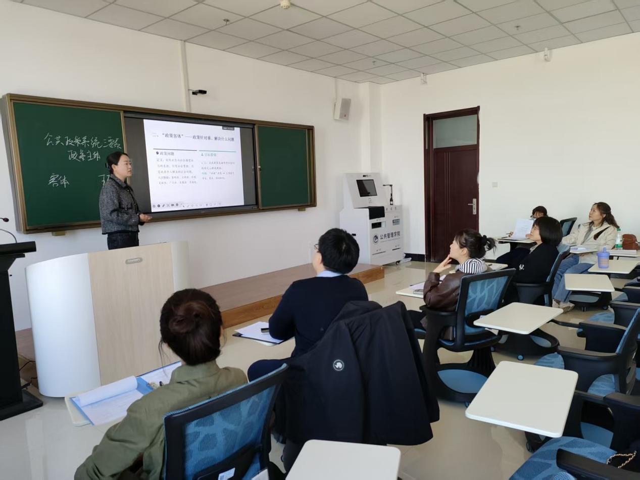 本次培训中,学院新入职教师王博书和张骞予分别进行了教学展示。王博书老师以《公共政策学》中的“政策主体、客体、环境三者关系”为主题,围绕课程核心概念进行了逻辑清晰讲解