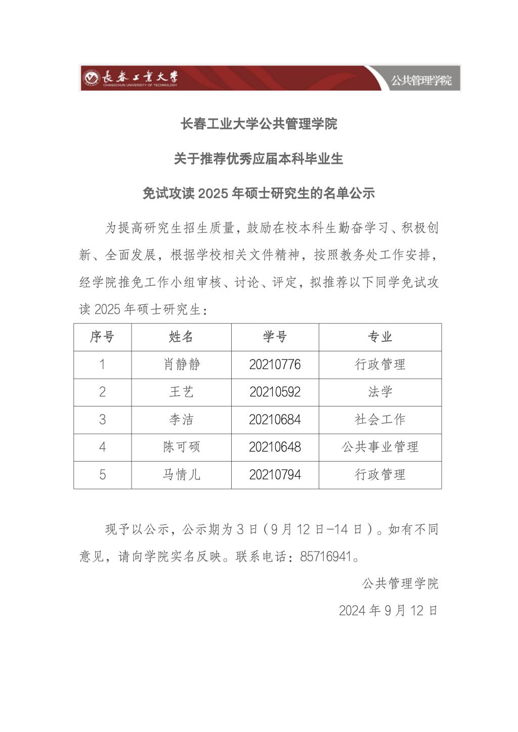 成人直播 关于推荐优秀应届本科毕业生免试攻读2025年硕士研究生的名单公示