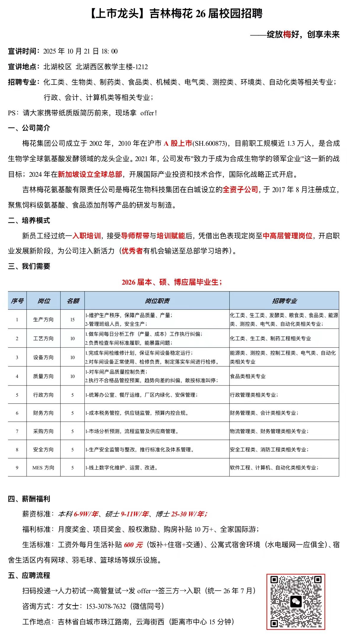 【上市龙头】吉林梅花26届校园招聘
